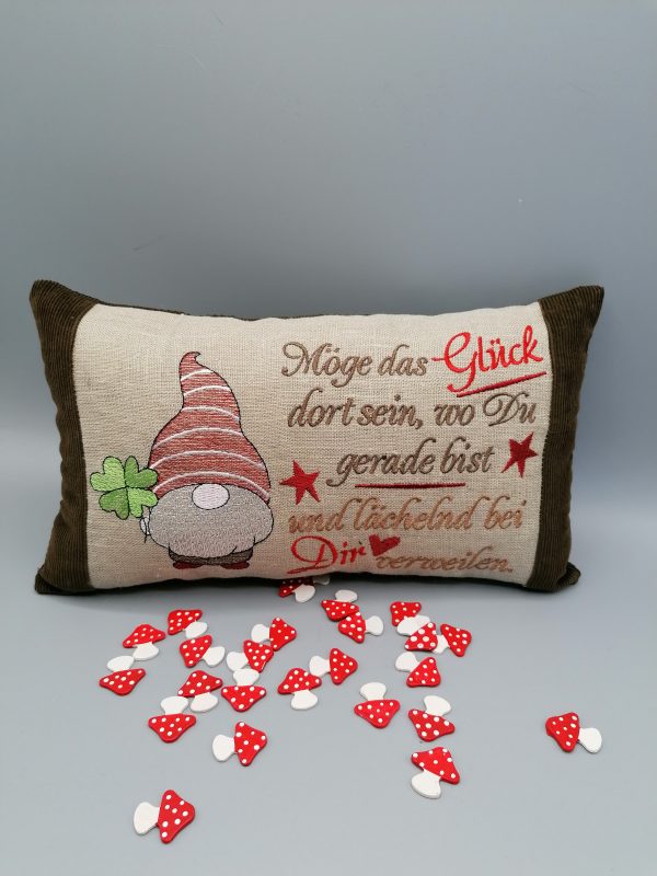 Ein kleines süßes besticktes Kissen, als kleine Aufmerksamkeit oder Mitbringsel. Es eignet sich auch hervorragend im Auto als Stütze.