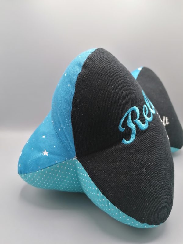 Es besteht aus 100% Baumwollstoff und ist mit Polyesterbällchen gefüllt. So kann es ohne Weiteres bei 30° gewaschen werden.