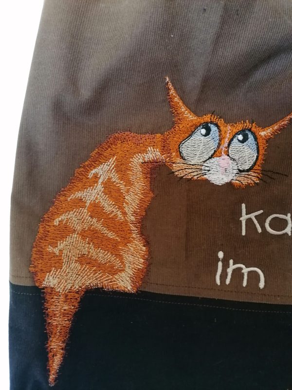 Er besteht aus 100%Baumwolle (brauner und schwarzer Cordstoff).