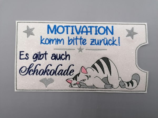 Die Schokoladenhülle ist auf Kunstleder gestickt, daher ist sie robust, abwaschbar und kann wieder verwendet werden.